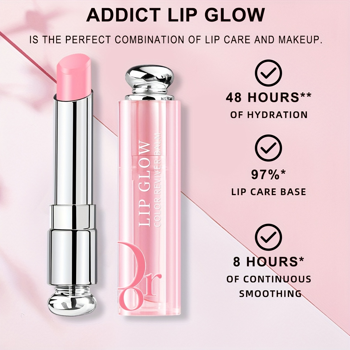 Color-Reviving Technology: Reacts with your lips' natural moisture levels to create a customized, enhanced shade of pink that complements your unique lip color.