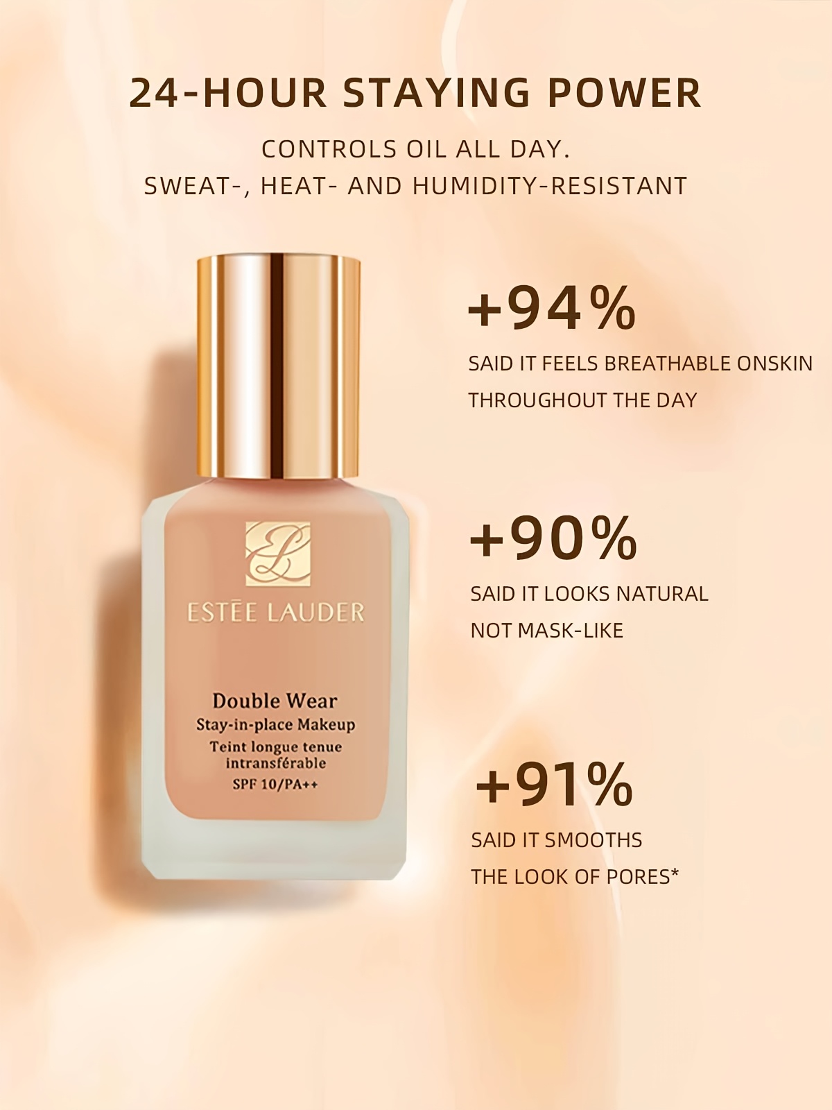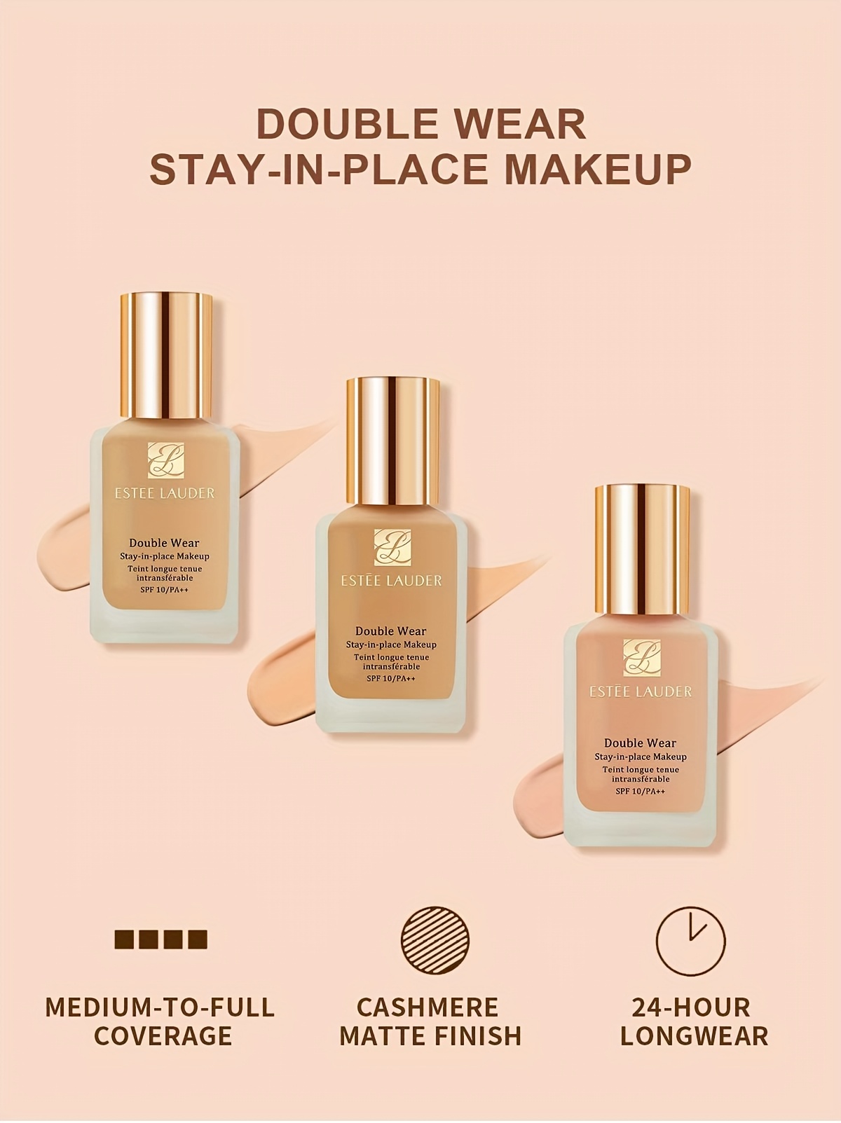 Estée Lauder Double Wear Stay-in-Place Foundation is a legendary, weightless liquid foundation that offers flawless, natural matte coverage for 24 hours. This transfer-resistant, long-wearing formula is specifically designed to combat oiliness, providing a fresh, seamless look that stays impeccable through heat, humidity, and non-stop activity without fading or settling into lines.
