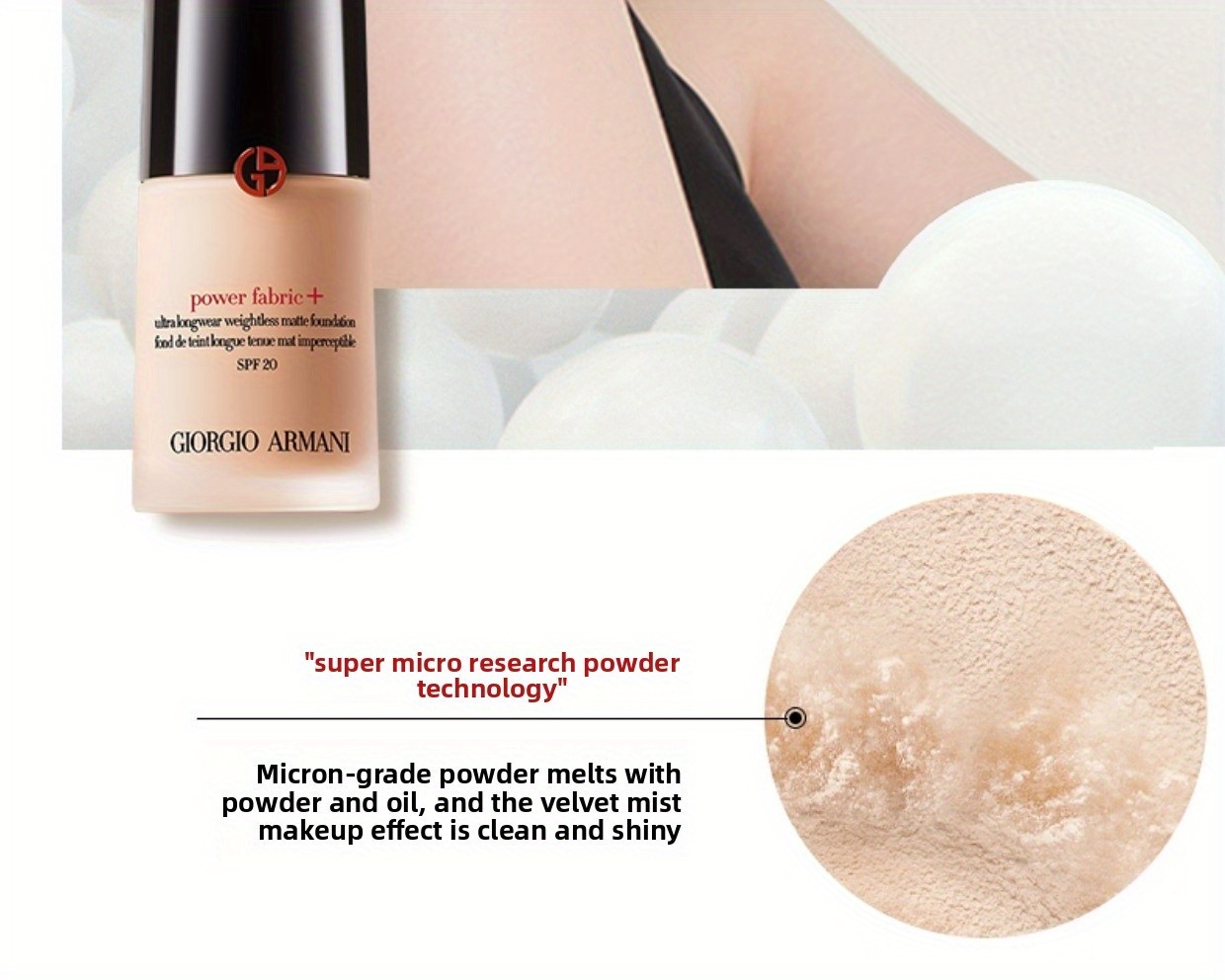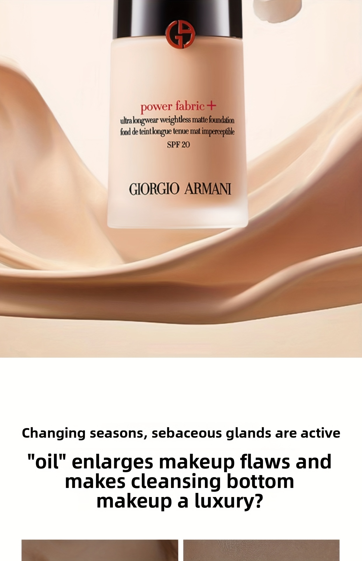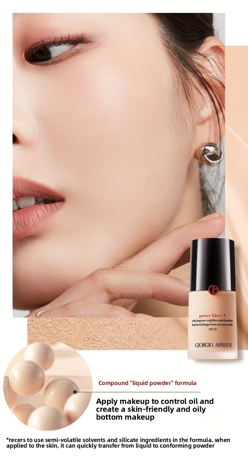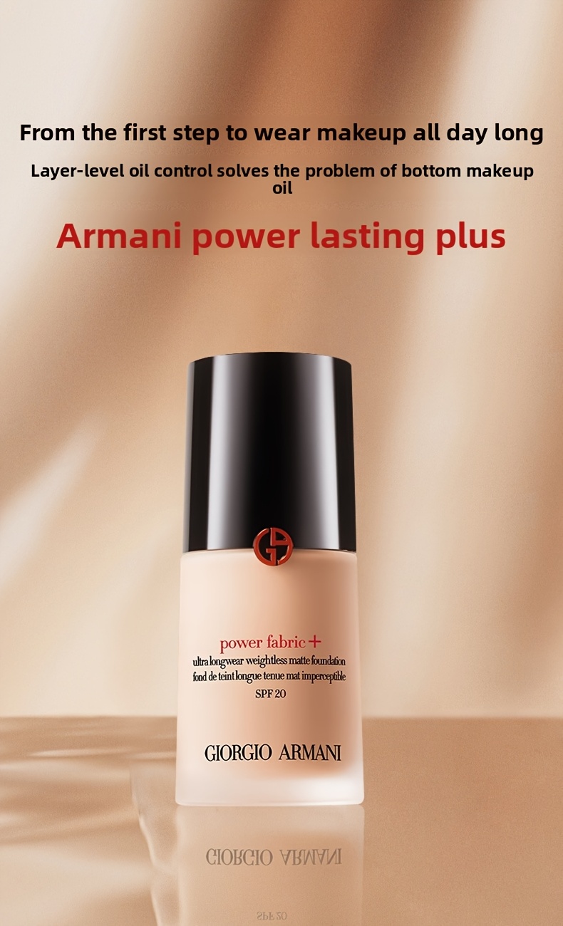 Giorgio Armani Power Fabric+ is a breakthrough long-wear foundation that delivers full, buildable coverage with an undetectable, velvety-matte finish. Its innovative lightweight formula, powered by plant-based Squalane, ensures all-day hydration and comfort, making it the ultimate solution for a perfected complexion that lasts without compromise.